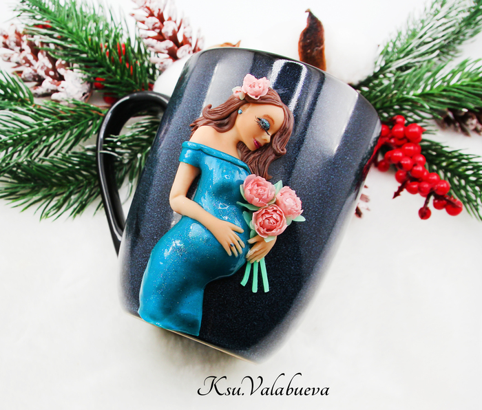 Представляю вашему вниманию кружку с декором ручной работы из полимерной глины.