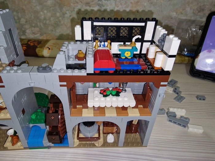 Завершением первого модуля служит черепичная крыша и высокая башня с колоколом, которую венчает флаг с гербом Львиных рыцарей (еще одна фракция).