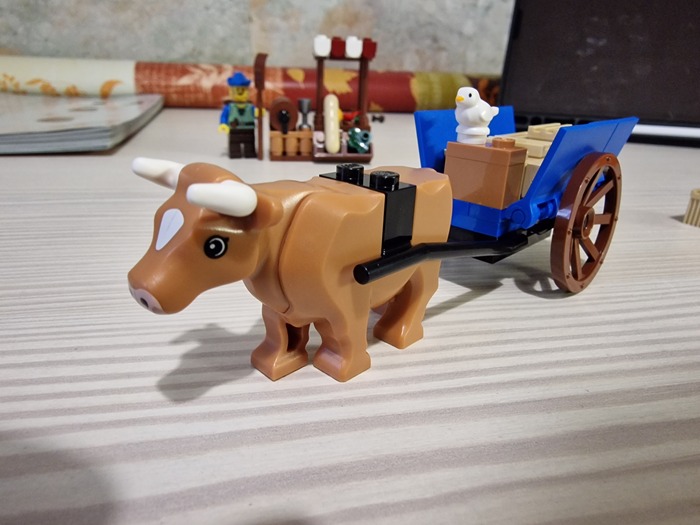 Вот мы и добрались до самой сборки и первое, что нам советуют собрать, это рыночная палатка и фермер с его телегой и быком.