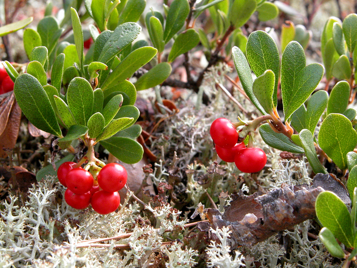Толокнянка, или «медвежьи ушки» (Arctostaphylos uva-ursi) – небольшой вечнозеленый стелющийся кустарничек из семейства вересковых.