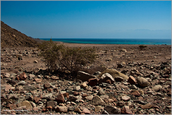 Тут мы подошли к горам, и я заметил две вещи. Первое — никакой Голубой Дыры и близко не было видно. Вокруг расстилалась всё та же Обычная Дыра. Второе — я осознал, что верблюды останавливаться не собираются, а упрямо прут к месту, где горы уходили в море. Мне было интересно, собираются они плыть или лезть в горы? Оказалось, что последнее.