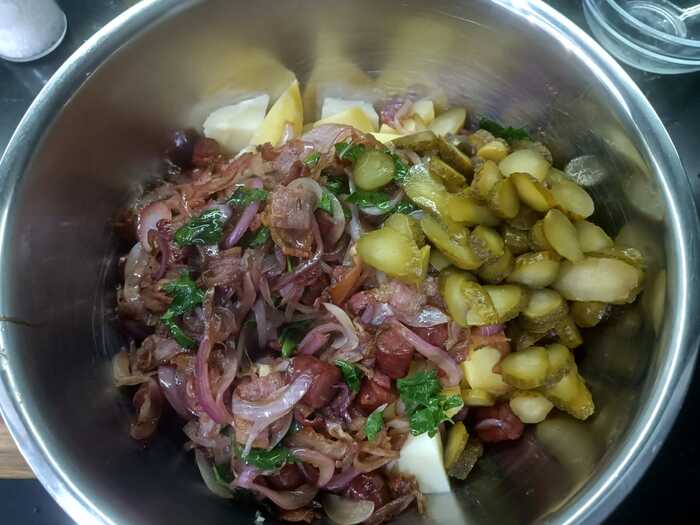 5. 1 столовую ложку 9%-го уксуса. У меня 6%-ый. Я добавил 2 ложки.