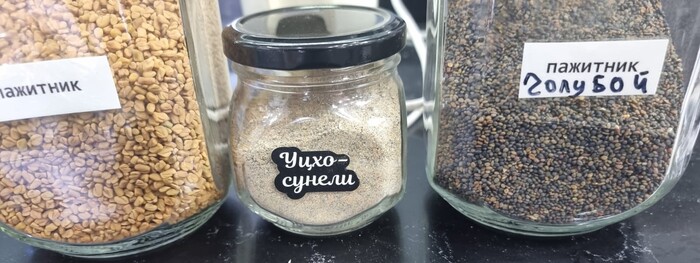 Во-вторых огромное количество фирм выпускающих специи, проявляют дикую нездоровую фантазию и в специи кладут всё что им вздумается. На самом деле, что подешевле. Я долго не мог понять про уцхо-сунели. Это молотые семена пажитника. Но не простого, а пажитника голубого.