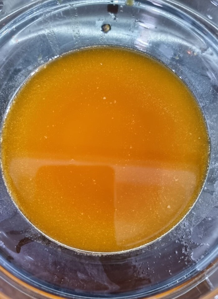 Потом добавляем ложку тёплой воды и мнём ещё минут 5-10. В результате масло начнёт выделятся и его сливаем в отдельную чашку. "Жмых" не выкидываем он нам ещё пригодится.