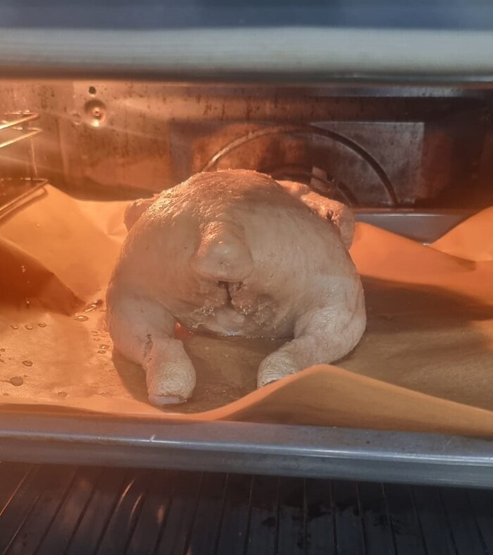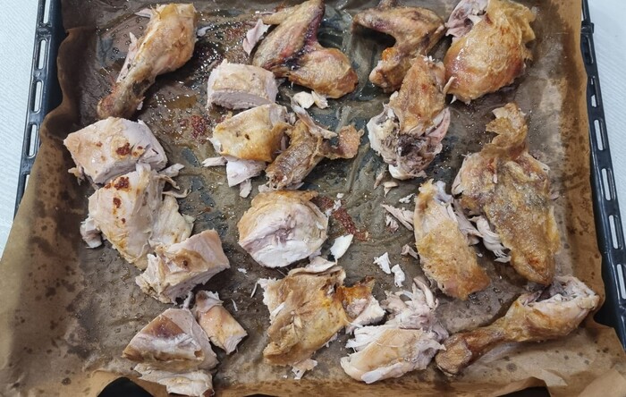 В это время курица приготовится до "полуготовности". Процеживаем бульон, а курицу солим и ставим в разогретую духовку. Тут Зураб забыл указать температуру духовки. Я поставил, как в других его видео на 180 градусов. Но скоро сообразил, что этого мало и добавил до 230 градусов Цельсия.