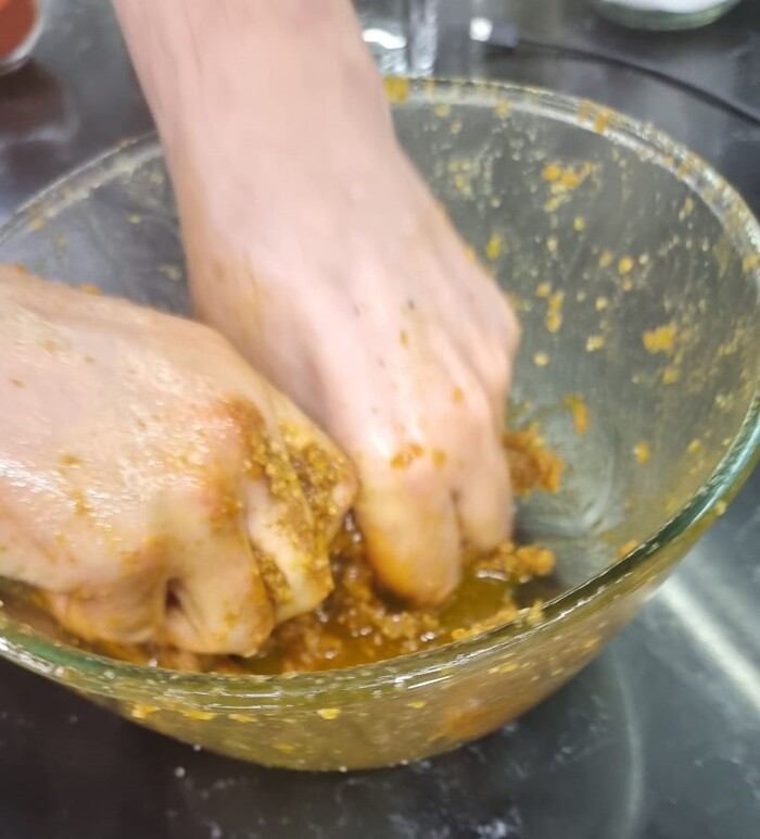 7. 4 чайные ложки Уцхо-сунели. Как я понял, Зураб кладёт 1 чайную ложку на пол кило курицы.
