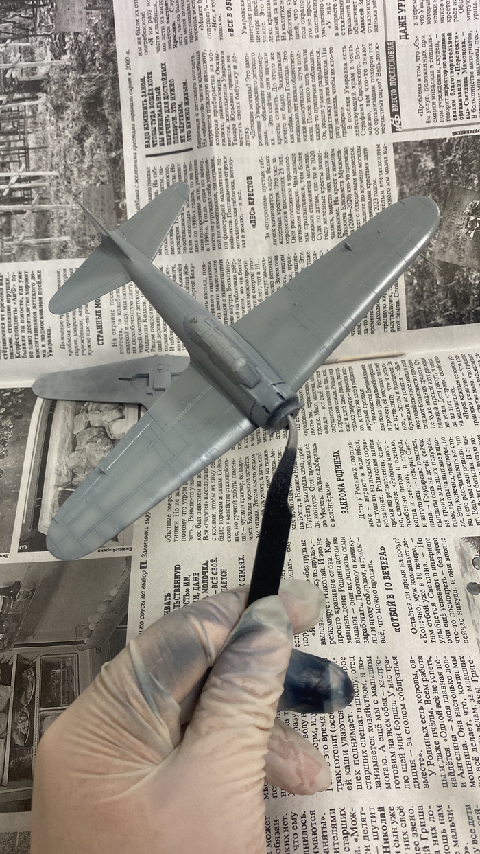 В двух предыдущих работах я заметил какую-то шагрень/зернистость при окрашивании. На Хаябусе с H8 Silver Mr.Hobby я думал, что намудрил с растворителем, а на Секи с SM208 (цвет дюралюминия) я начал подозревать, что 500 грунтовка слишком крупнозернистая. В этот раз взял 1000. Посмотрим, что получится дальше.