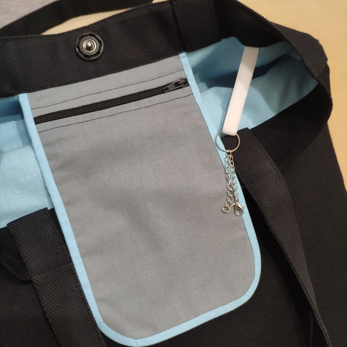 Вторая причина особенности этой сумки в том, что во время ее проектирования мой парень в шутку сказал, что хочет, чтобы внутри сумки у него был свой собственный карман, в который что-то положить можно будет только ему. Конечно, это было сказано просто ради хохмы, но я все равно это сделала.