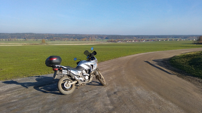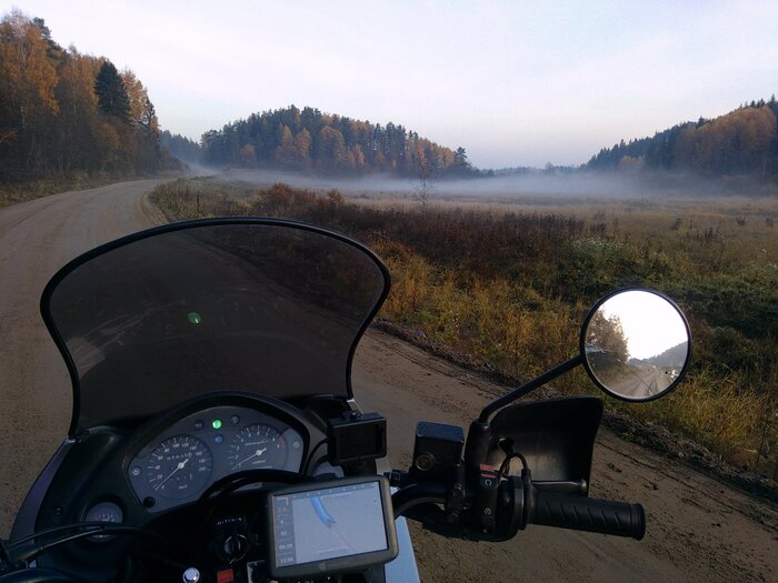 С некоторых пор я люблю грунтовки. Мой нынешний мотоцикл позволяет мне сполна ощутить всю прелесть полёта над землёй, когда колеса едва цепляются за дорогу, а руль становится мягким и податливым. На грунтовках почти всегда тихо и безлюдно, там всегда красиво и никогда не скучно. Да, на них бывают ямки, но это легко исправляется увеличением скорости; да, на них бывают ямищи, но мне не трудно привстать на подножках. Удовольствие может испортить глубокий рыхлый песок или не укатанный крупный щебень, то такое бывает редко.