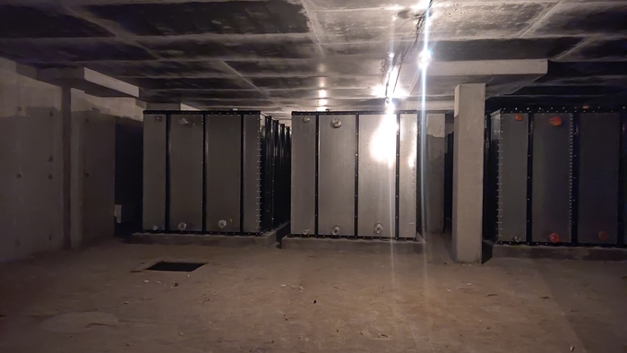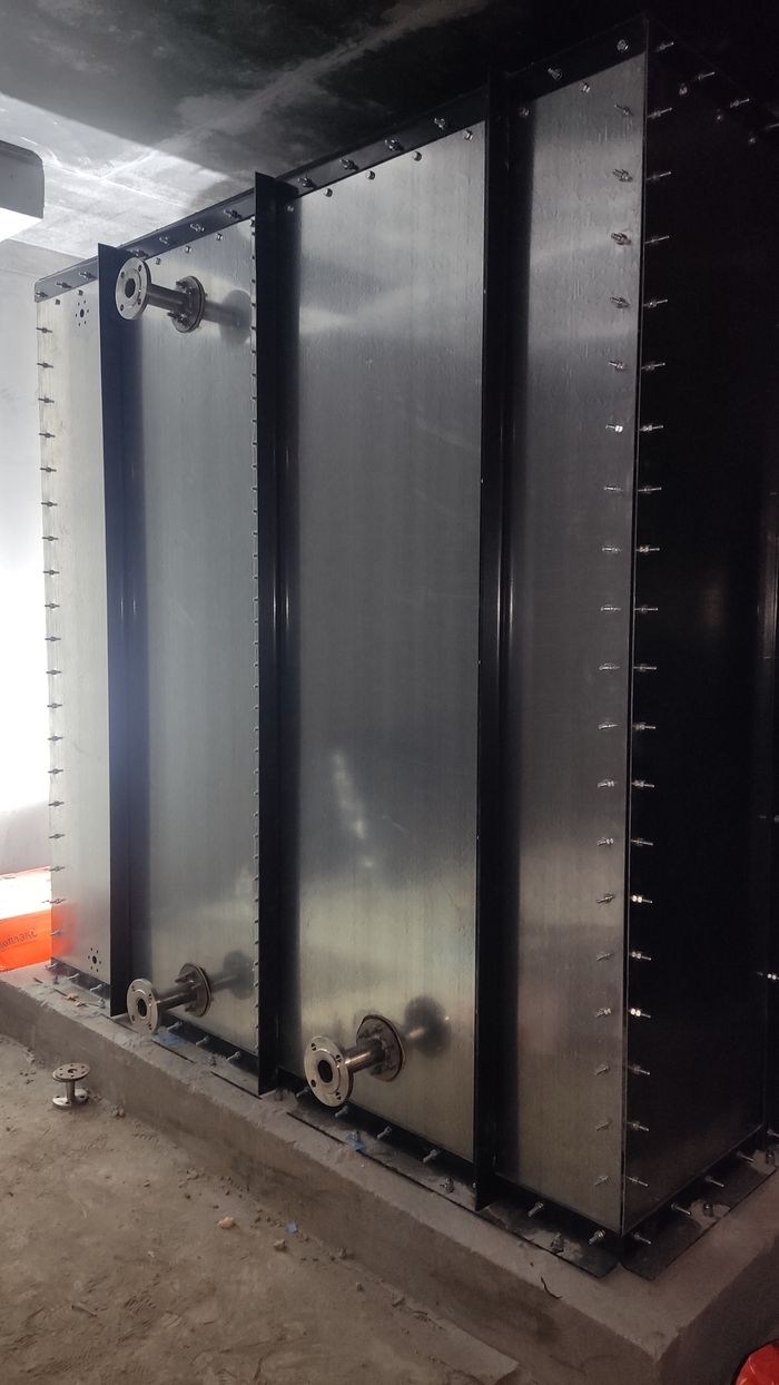 Резервуары сборные металлические для холодной питьевой воды. Изготовлены из оцинкованного металла толщиной 3мм, утепление внутри пенофлекс 30мм, гидроизоляция обеспечена гигиенической питьевой мембраной из ПВХ (сменный вкладыш). Рабочий обьем одного резервуара 30 куб. Размер ДхШхВ 5*2,5*2,5м. Количество 4шт. Срок изготовления материалов 52 дня, срок сборки 1 неделя.