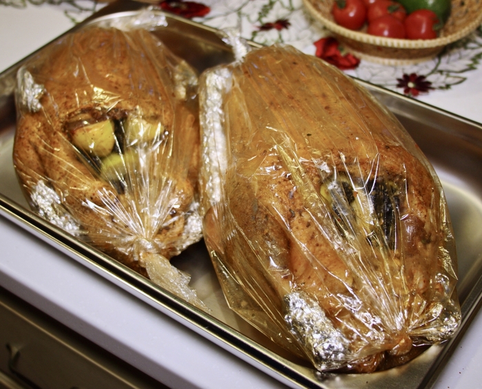 Завернул тушку в пергамент. Плотно. И отложил на часок. Пусть полежит, впитывая в себя то, чем я ее сверху натер.