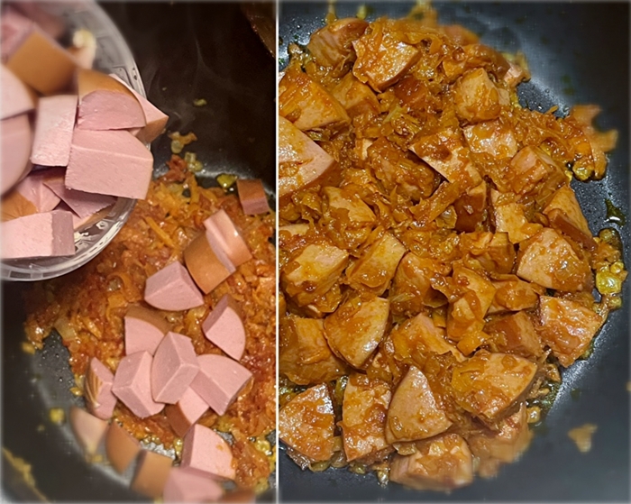 Я раздробил и добавил. Не надо этого делать! На мой взгляд это имело два вредных последствия. Первое – начинка получилась суховатой, мягко говоря. Зато крошки набухли и … Вот тут и, во-вторых. Тушку «разнесло», даже лопнула.