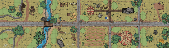 Ваше появление, кажется, здесь никого не волнует. Народ веселится и празднует что-то. Народ снуёт туда-сюда между развлечениями. А развлекаться, как вам кажется, есть где. Тут есть и диковинные скульптуры, собранные из подручных средств (по всей карте), и сцена, на которой выступает какой-то дворф (зона 9), и мостки, на которых какой-то орк играет в перетягивание каната с целой толпой дворфов, и загон со свиньями, в котором юная девушка дроу бросает поросят на, кажется, дальность (зона 5), а за толпой левее сцены (зона 7) вы видите толпу, окружившую кобольда. В дальнем конце ярмарки вы замечаете таверну под открытым небом (зона 10) и несколько торговцев (зона 11).