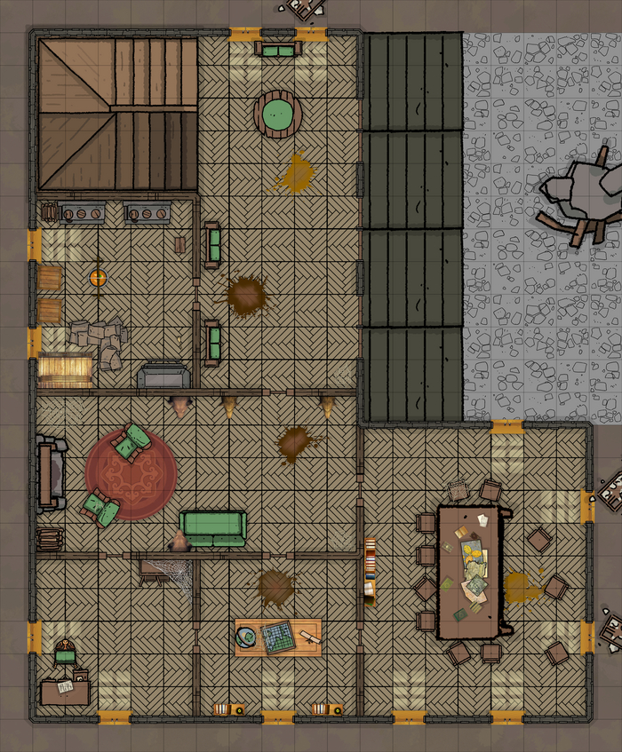 Карта содержит большое количество обывателей, у которых 5 очков здоровья, показатель брони 10, а все характеристики равны 10 (модификатор 0). У некоторых из них может быть импровизированное оружие 1к4 ближнего боя (кирки, дубины, ножки от стульев, музыкальные инструменты и прочее), модификатора атаки нет. У пары-тройки могут найтись сети, которыми они попытаются остановить зачинщиков бойни. Обыватели накидываются на персонажей целым скопом и будут пытаться взять не умением, а количеством. Каждого персонажа (если это возможно) окружает сразу 4-6 обывателя, они атакуют с преимуществом. Для всех обывателей мастер кидает один кубик инициативы. Обыватели не могут убить персонажей, а только лишить их чувств. Ни при каких условиях обыватели не станут добивать персонажей.