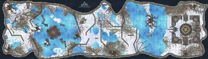 Игроки стартуют в юго-восточной части карты. В этот момент игры большая часть карты скрыта туманом войны. Попросите игроков разместить свои токены в выделенной зоне, пока вы будете описывать введение к карте.
