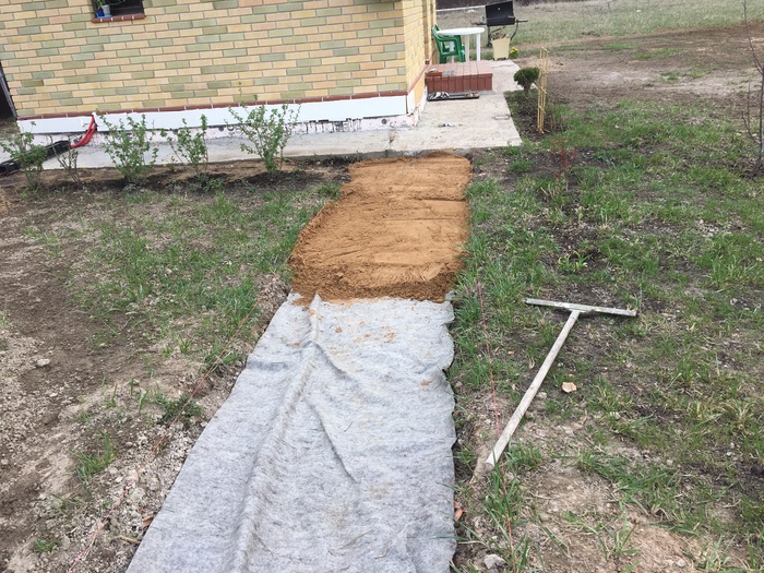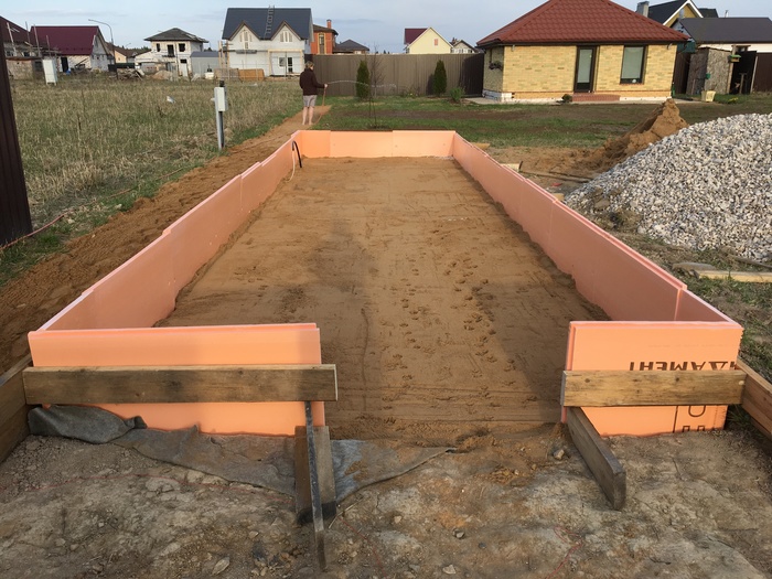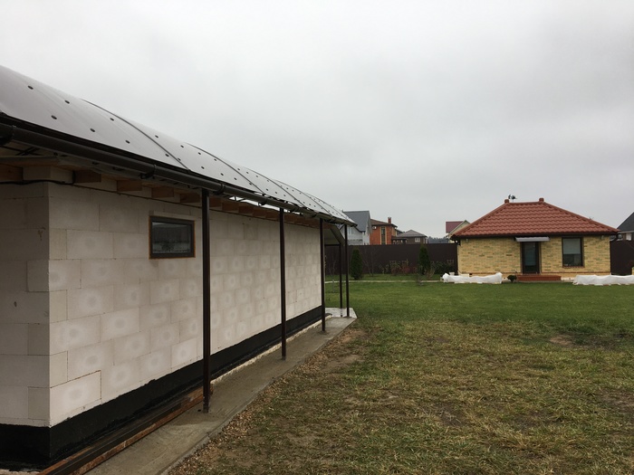 Также сделал отмостку. Помог брат. Боковушки пока не стал, устал). Посмотрю сколько снега наметет. Если не много, то не буду делать.