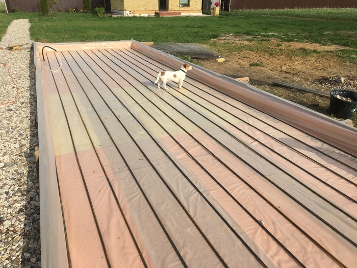 Да кстати, забыл сказать. Продольные поперечины (лапша) были приварены с шагом 40см, труба 25х25х2. По нагрузке снеговой все проходит с запасом.