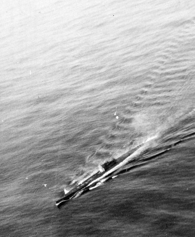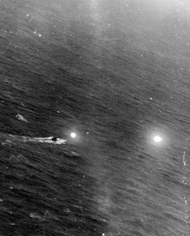 Немецкая подводная лодка U-801 (тип IXC/40) под атакой американских противолодочных самолётов TBM "Эвенджер" из авиагруппы эскортного авианосца "Блок-Айленд"
