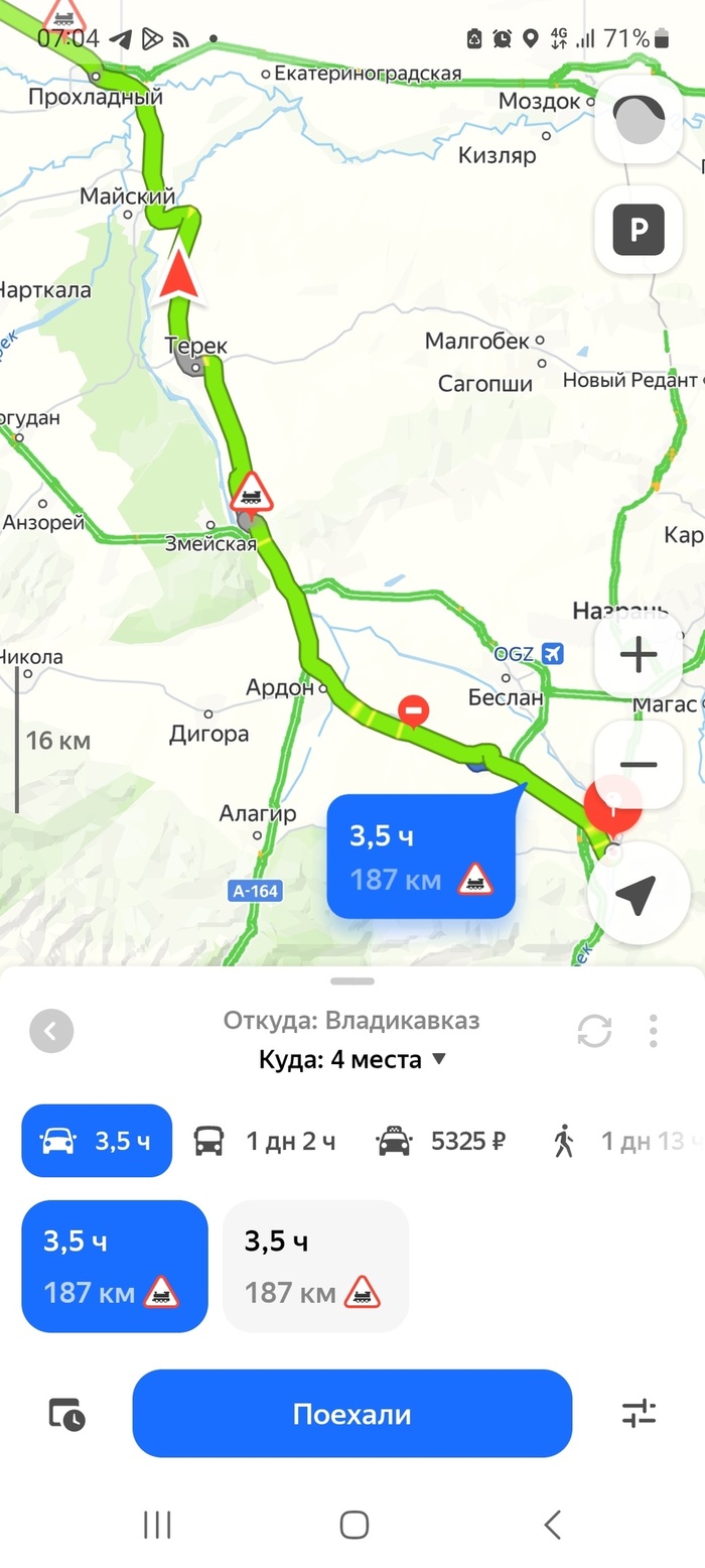 Мы сразу отказались от идеи ехать через Моздок. Наш путь лежал через небольшие населённые пункты Северной Осетии, Кабардино-Балкарии и Ставрополья вдали от основной федеральной трассы. Через осетинский Ардон и кабардино-балкарский Терек мы держали путь к ставропольскому Буддёновску, а оттуда уже планировали ехать в Элисту и через Калмыкию в Волгоград.