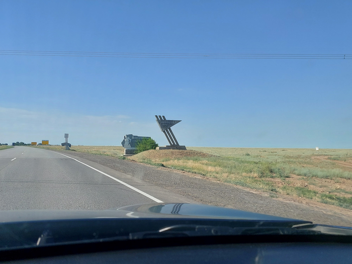 Путь до Волгоградской области занял у нас три часа. Три часа по бескрайней степи, где не встречались даже лесополосы... Первое, с чем мы столкнулись - это сильный боковой ветер. Сперва не могли понять, почему машина подпрыгивает всякий раз как на волнах, когда мимо проезжает встречный автомобиль. Даже вышли проверить, всё ли нормально с колёсами. И вот пока мы стояли рядом с авто и мимо пронёсся большегруз, нас словно по спине лопатами огрело - такой силы был ветер. В общем в дальнейшем приходилось притормаживать перед каждой встречкой, чтобы машину не так качало.