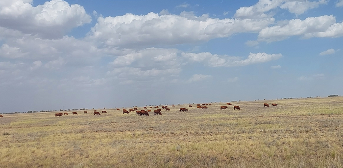Всё это время мы, не сворачивая, ехали по прямой. За окном жарило солнце, температура поднялась градусов до 38. Благо, что внутри работал кондиционер. Не считая других машин, нам встречались только стада коров, лошадей и изредка овец. И лишь перекати-поле, пересекающее трассу слева-направо, стало нашим постоянным спутником.