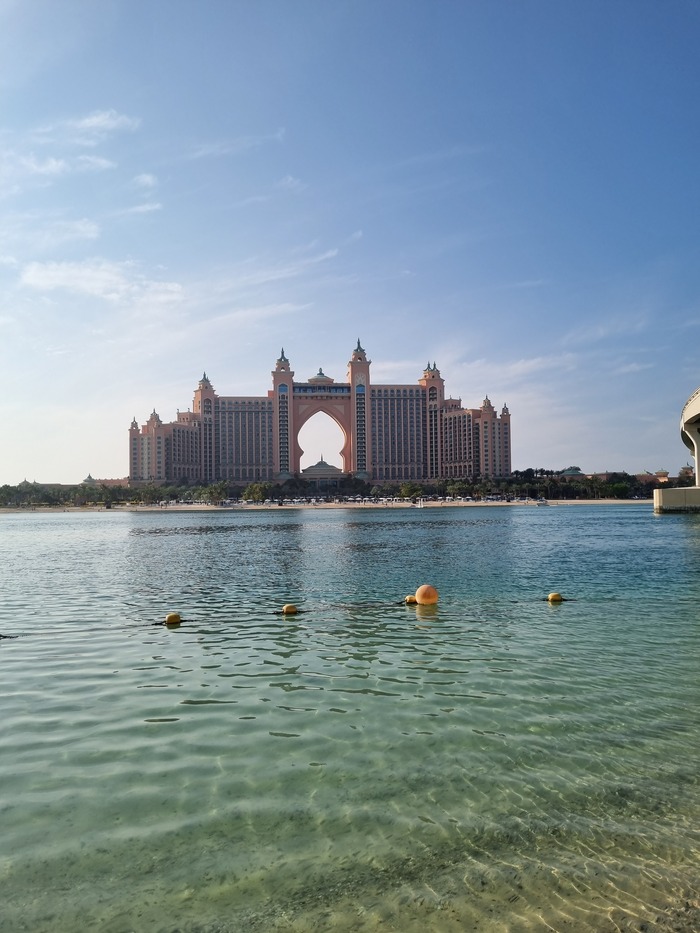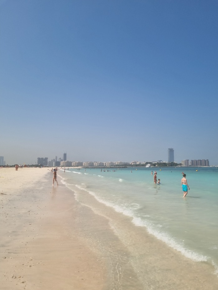 В феврале в Эмиратах начинается весна и на улице стоит комфортная температура плюс 25 градусов. Температура воды около 22, но есть нюанс в виде сильного ветра, который поднимает волны. Из шести дней нашего отпуска, четыре дня висел красный флаг, запрещающий купаться в море. Хотя лично меня данный факт несколько не огорчал, ибо я не фанат пляжного отдыха)