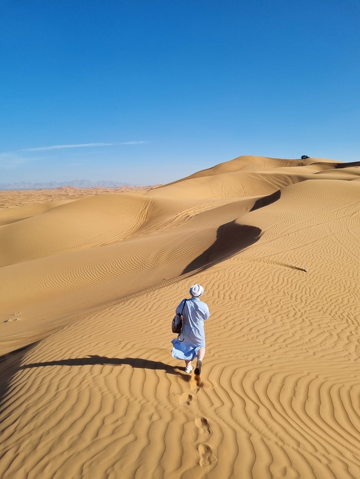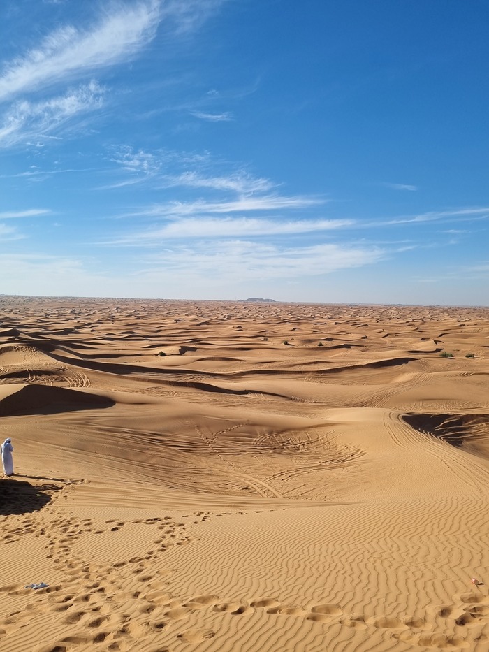 В программу нашего отдыха входила экскурсия к Индийскому океану в эмират Фуджейра. Дорога туда проходит через пустыню, которая сменяется горной грядой Джабаль-аль-Хаджар, что в переводе с арабского означает “Каменные горы”. Сочетание видов потрясающее.