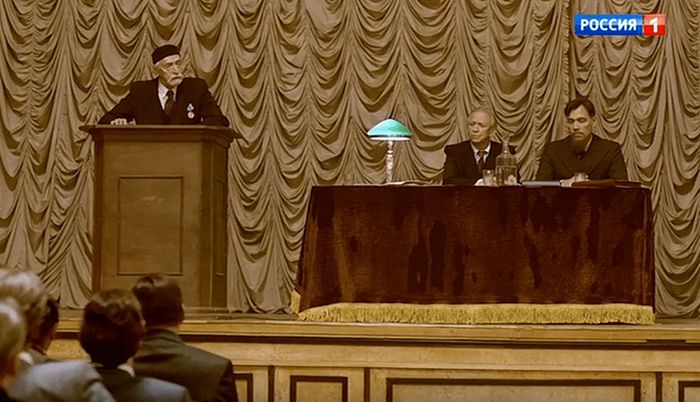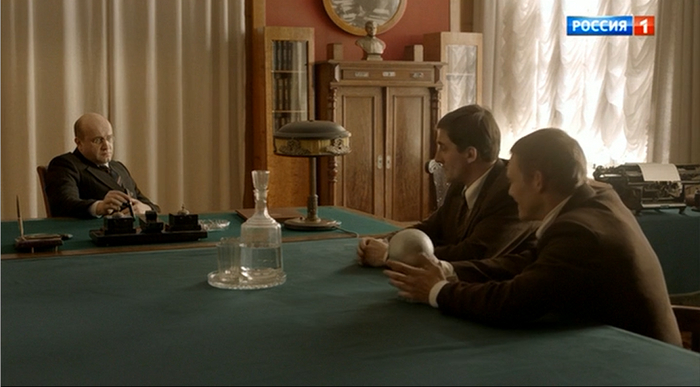 После этого, Ванников подзывает к себе Юлий Борисовича и показывает ему один документ, в котором сказано, что Ольга Изотова скончалась в лагере на Колыме, от воспаления легких, две недели назад. Напомню, реальный прототип Ольги Изотовой, умерла в 2000 году от старости. Ванников не знает, стоит ли сообщать о смерти Ольги Рубину, ведь тому уже завтра предстоит очень важное дело. Харитон говорит, что он сам все сообщит Рубину.