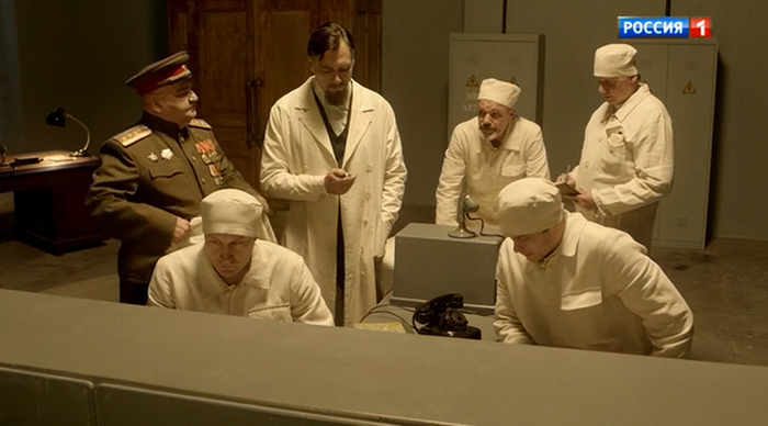 И вот настал день испытаний, Берия садится в буккере за пульт. Харитон спрашивает у Кирилла где находится Рубин, тот врет, что Рубин отправился в санчасть, потому что ему стало плохо.