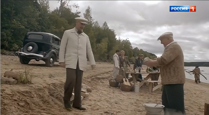 Оказывается, тут на озере происходит пикник, под бдительным оком чекистов, которые расхаживают с автоматами вдоль берега озера. Тут на машине подъезжают Курчатов, Харитон и Рубин Генерал перед Курчатовым хвастается, что он поймал щуку весом в четыре килограмма, в качестве доказательства он может предоставить акт, сама же щука уже находится в ухе.