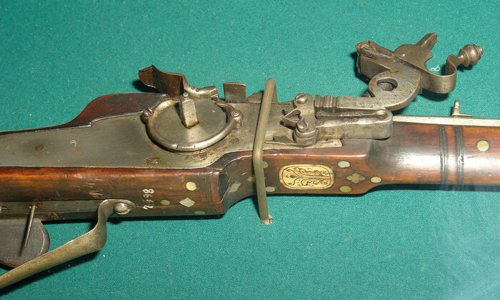 Одна из самых популярных идей в многозарядном оружии была использовать вращающийся барабан - цилиндр с несколькими отверстиями под заряды, каморами. Иными словами, револьверный принцип. Одно из первых таких ружей есть в лондонском Тауэре и, предполагается, принадлежало Генриху VIII (первая половина 16 века). Барабан вращался рукой.