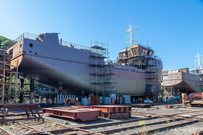 Сейчас на НСРЗ одновременно строят 22 судна-краболова. Первоначально заказ был на 8 судов, а недавно заложили еще 14. Помимо проекта CCa5712LS, суда строят и по обновленному проекту CCLC600.