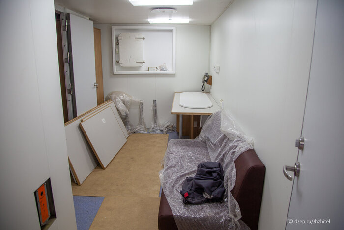 На борту краболовного судна могут разместиться 24 человека. Для них предназначены каюты, в которых есть рабочие зоны и санузлы.