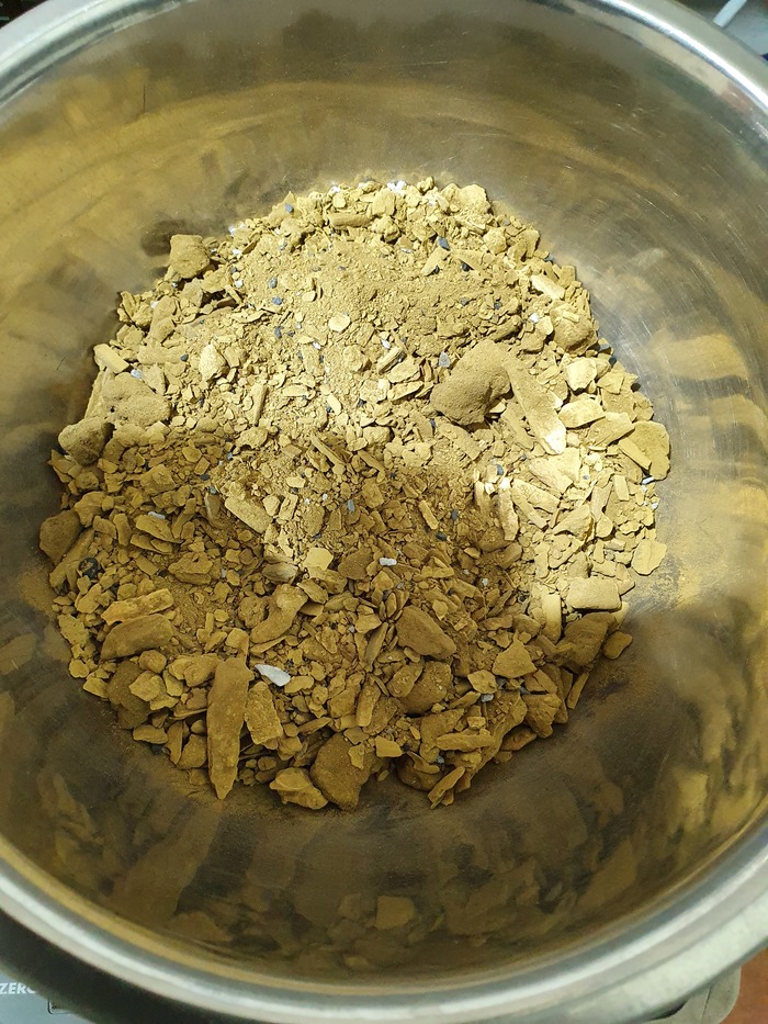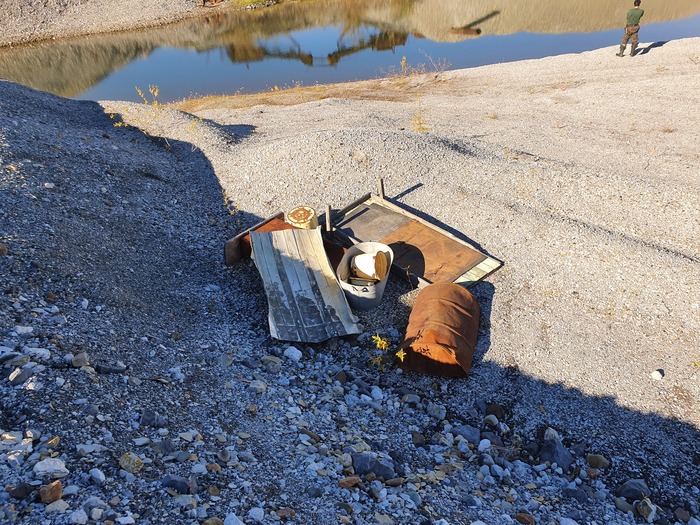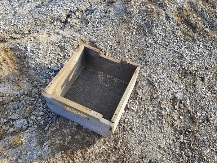 Материал размывался на перфорации напорной водой из шланга, то что проваливалось в отверстия перфорации 30 мм самотеком шло на две параллельные линии обогащение, а крупные щебень и галька через «гусак» выкидывались в отвал, вероятно вручную, потому что гидромонитора я там не нашел (хотя могли и утащить после ликвидации поселка). Отвал гали, кстати, приличный – пара-тройка тысяч кубов.