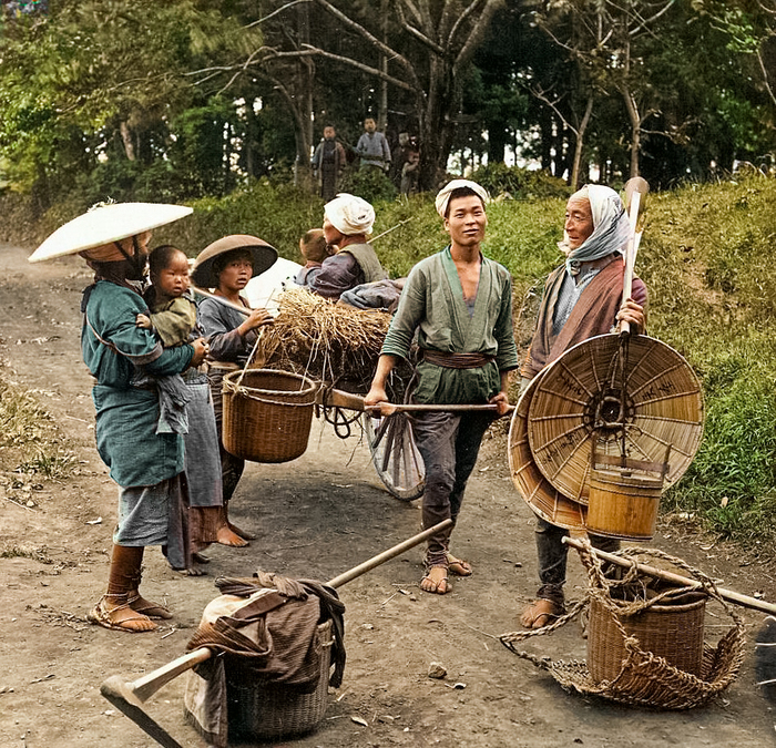 Крестьяне идут домой с поля. Япония, 1898 год.