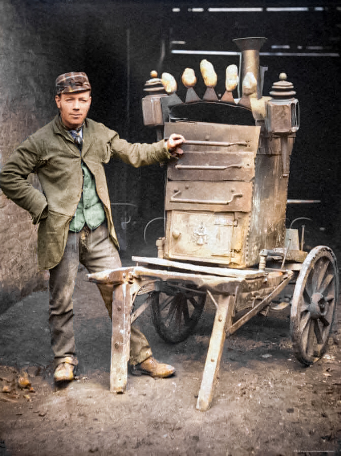 Продавец горячей картошки. Нью Йорк, США, 1892 год.