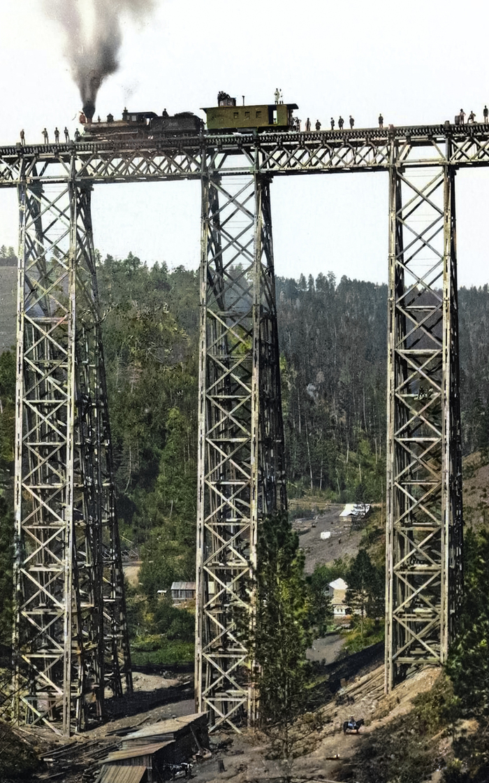 Мост через ущелье Марент, имел высоту 69 метров и длину 240 метров. Для строительства моста Северной Тихоокеанской железной дороги потребовалось 800 000 досок и 150 рабочих.