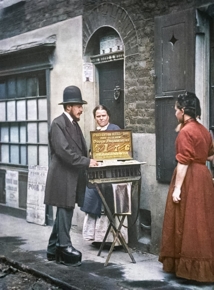 Продавец леденцов от кашля на улицах Лондона, 1877 год.