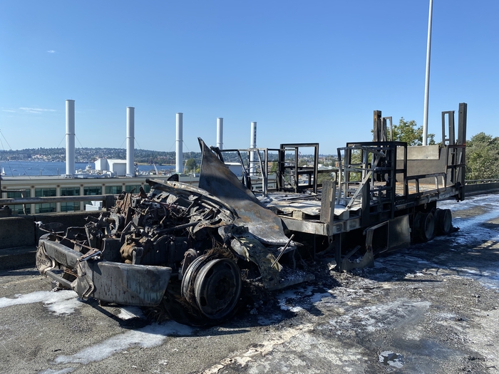 Но вернемся к авариям. Бывают аварии вселенского, в нашем понимании, масштаба, когда патрулю приходится перекрывать всё движение на магистрали и привлекать весь персонал на смене. Это либо аварии с жертвами, либо пожары или аварии с утечками химикатов. Ниже на фото авария, перекрывшая всю 5ю магистраль в обе стороны. Загорелся грузовик, перевозивший баллоны с кислородом и водородом. Началось всё около часа дня, а открыть все полосы движения мы смогли лишь в семь вечера. Многие удивляются- почему так долго. Во первых- само тушение занимает много времени. Во вторых- на подобные аварии вызывают специалиста, который обязан задокументировать аварию до сантиметра со всех сторон, и это занимает уйму времени. В третьих- если есть жертвы, на место аварии вызывают патологоанатома и он тоже составляет первичный протокол. Словом всё намного сложней, чем кажется.