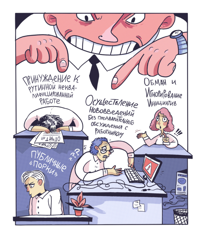По-настоящему демократичный руководитель придерживается индивидуального подхода к своим сотрудникам. В один (не)прекрасный момент он может заявить, что вы виноваты в нервной болезни коллеги. Другого начнёт игнорировать, будто его и нет. Третьему предложит на безвозмездной основе выполнить задачу за другого специалиста. Ключик найдётся к каждому. Сыграют и на вашей гиперответственности, и на чувстве вины.