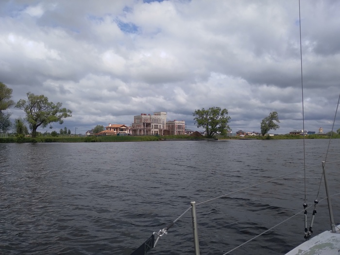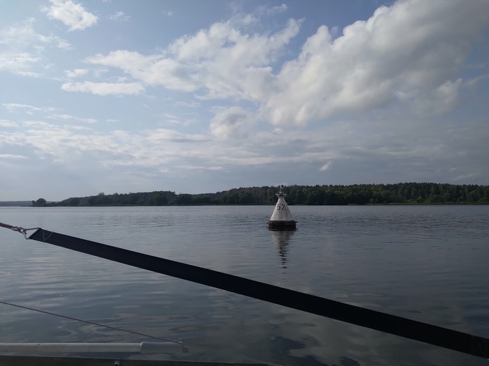 Потом ветер отходит к западу и начинается откровенный мордотык против приличной волны. Тоже завожу мотор, дохожу до 69-го буя, сворачиваю на старый Югский фарватер и ставлю паруса. Дальше под парусами.