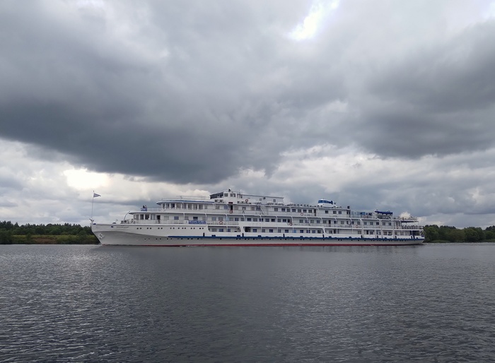 В Коприно зашел на заправку. На выходе из бухты стоит здоровенный новейший круизник «Мустай Карим». Впечатление неоднозначное - глухо застекленные палубы и утюгообразный силуэт, ну хоть такие строят, и то хорошо.