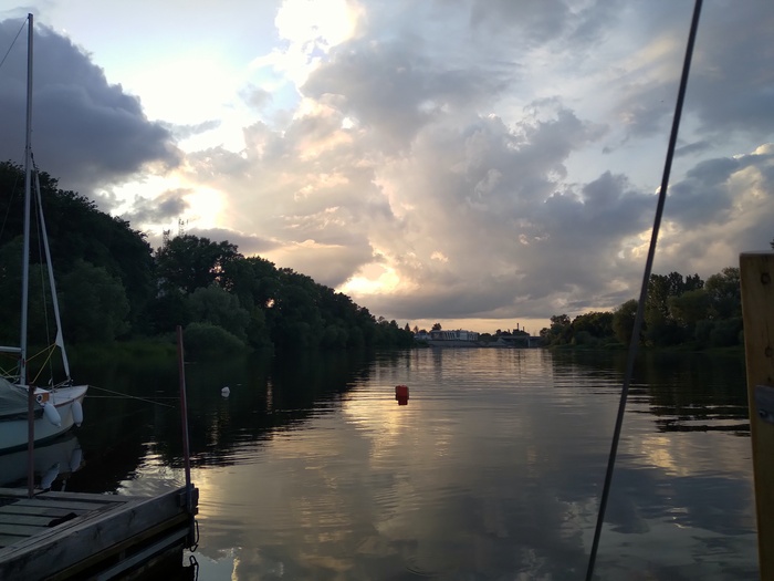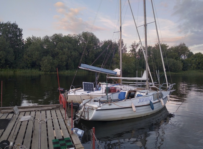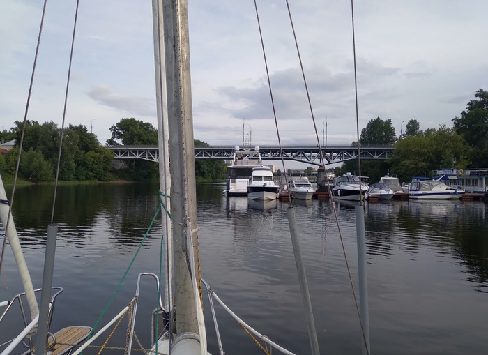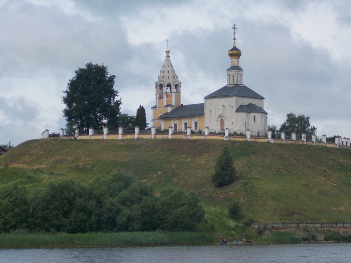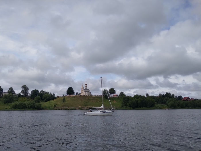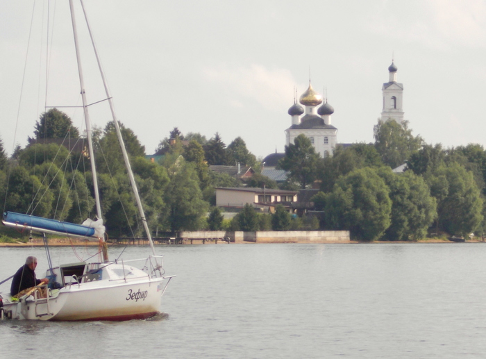 На выходе из подходного канала шлюза неожиданно встречаем друзей на яхте «Герда» из Дубны. У них умер аккумулятор, вот и пришли в Углич за новым. Пообщавшись, идем дальше.