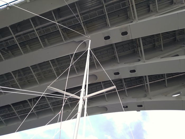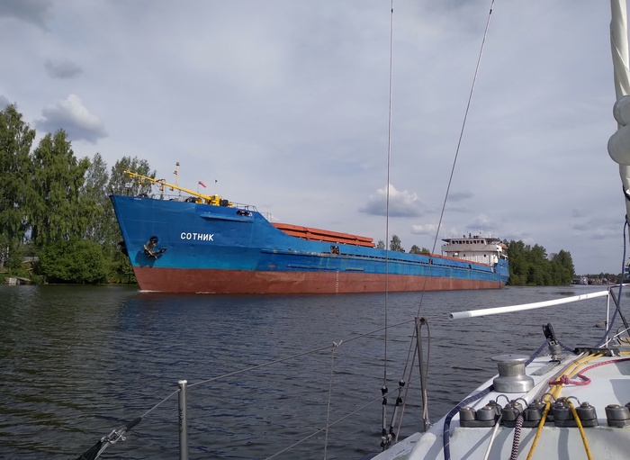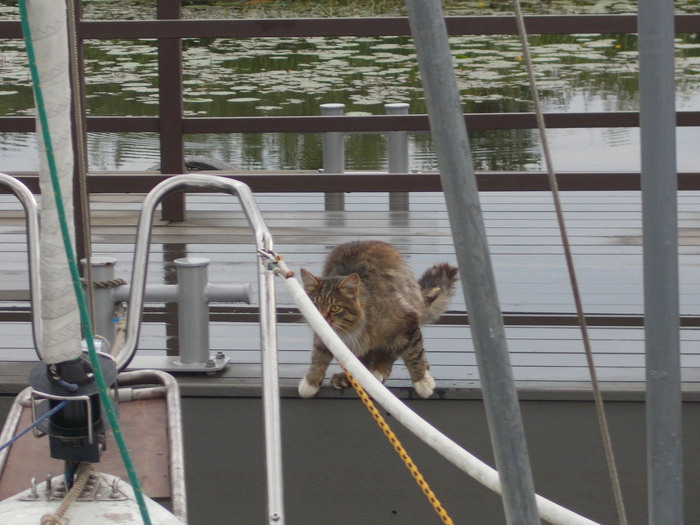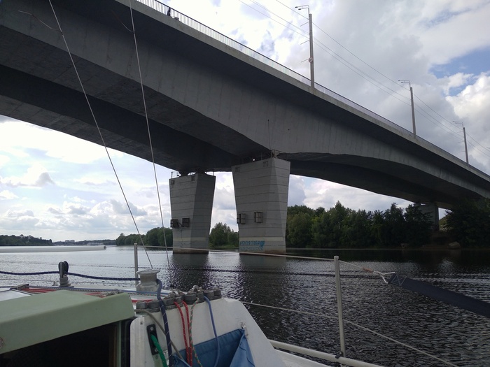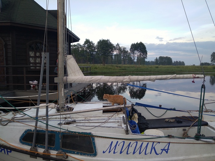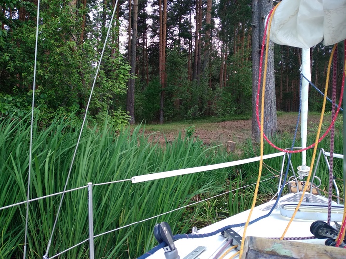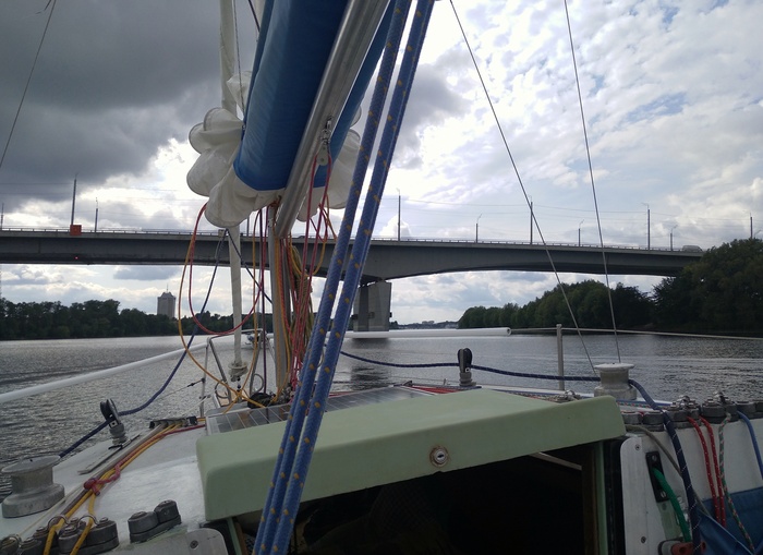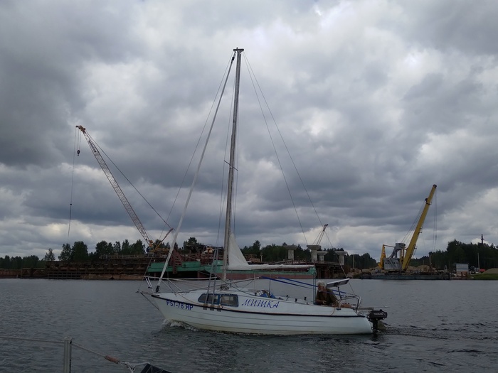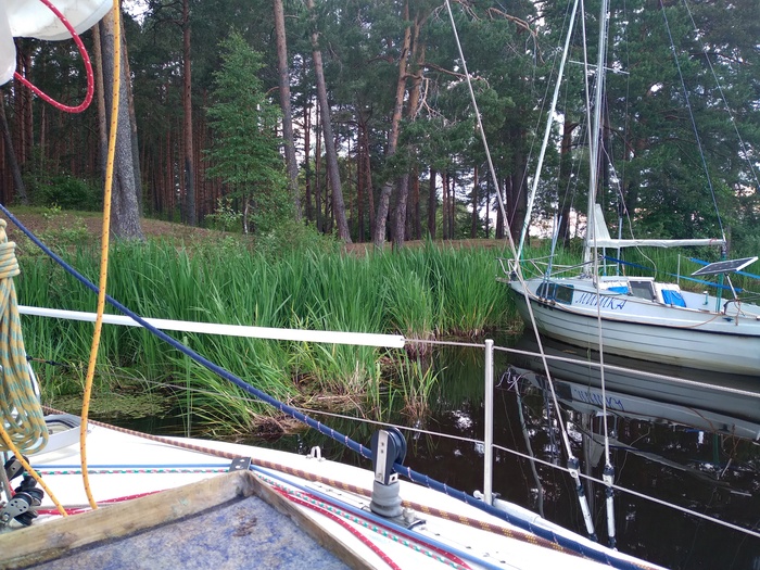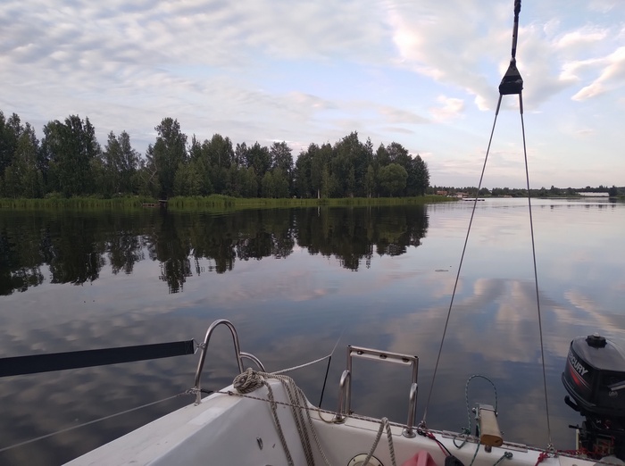 Наскоро выпив чаю, выходим. Я ставлю паруса, почти сразу приходится брать рифы. В этом году поставил закрутку грота, и взятие рифов, как и уборка парусов, никаких сложностей теперь не представляет. Все делается прямо из кокпита в одно лицо. Сергей сразу заводит мотор, я какое-то время иду под парусами.