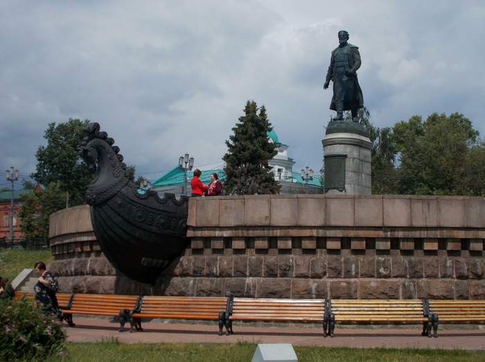 Дальнейший путь практически не отложился в памяти, разве что занял у Сергея 5 литров бензина. Все-таки Тохатсу-3,5 достаточно прожорливая машинка - около литра на 7 км пути. Стало жарко, солнце жарит немилосердно. Перед Мышкиным сзади подкралась туча, и нас обдало неслабым ливнем, пришлось залезать в непромоканцы. Ну, хоть жара сразу прошла.