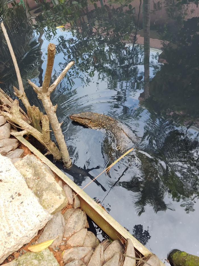 И дорога домой. Ещё один варан - похоже детёныш, жрёт таракана. Несколько павлинов, мирно ковыряющихся в траве. Масса разномастных птиц и пара гекконов, которые живут где у нас на вилле.