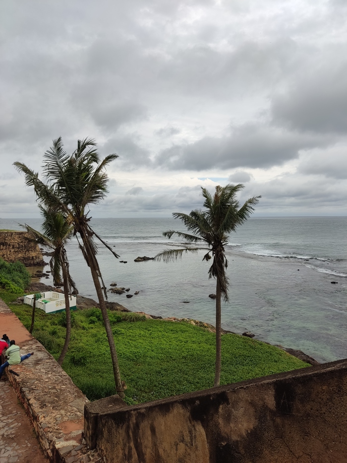 По дороге на пляж, до которого метров 300, мы натыкаемся на стаю собак, загнавших на пальмы пару обезьян, здоровенного варана, мирно кого-то жующего, бурундука, бодро чешущего вверх по каменной стене и встречаем дикобраза (но не всего, только говно).