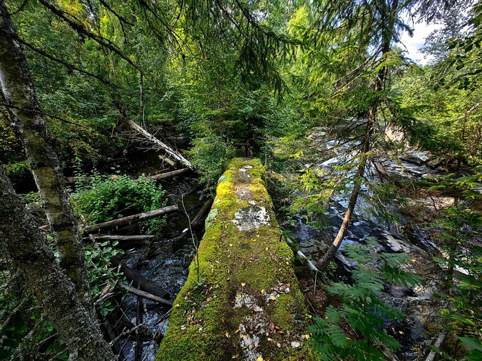 Поэтому едем в соседнюю деревушку - Святогорово . Хоть она совсем рядом, на машине приходится делать крюк в 20км. А пешком когда мы тут ходили в походик - переправа через речку.