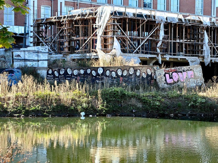 Чуть в далеке находится резервуар с какой-то жидкостью. Ещё пишут что можно найти остатки старой набережной, но мы их не заметили.