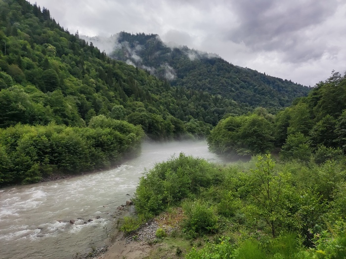 Поэтому выбираем удобное место на тропе и сообщаем всем заинтересованным лицам, что мы прошли, дошли до перевала и идем вниз! Особенно этим новостям были рады дети. И МЧС-ники, которые позвонили сами, сказали, что позвонили сразу, как мы оказались в зоне действия связи, что очень волновались и вопросили, точно ли мы дошли? все ли у нас в порядке? не было ли ЧП? Причину их волнений мы поняли, когда вечером дошли до зоны устойчивой связи и почитали новости о том, как побережье всю неделю топило ливнями... И сколько случилось ЧП и несчастных случаев. Да... А мы под этими ливнями шли...